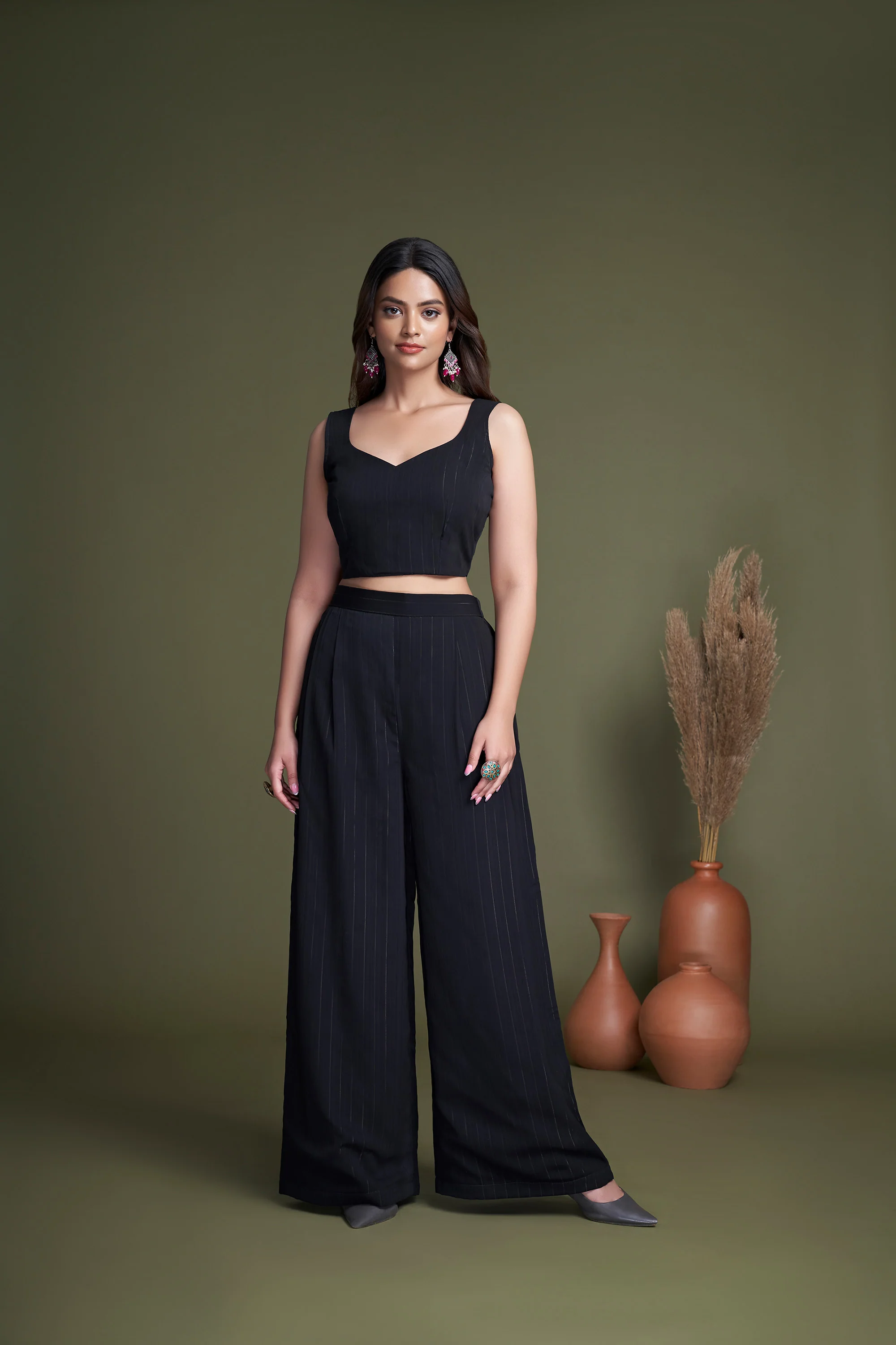 Are you seeking something exclusive? We've got what you require! This Black and White Embroidered Silk Party Wear Palazzo with its gorgeous embroidery and Black and White color is the perfect option for those seeking to make an impact. You will certainly be the center of attention in this Palazzo if you wear it to a wedding reception, an engagement party, or a sangeet. Pictured here is a bridesmaid wearing the Black and White Embroidered Silk Party Wear Palazzo, which you can purchase today!