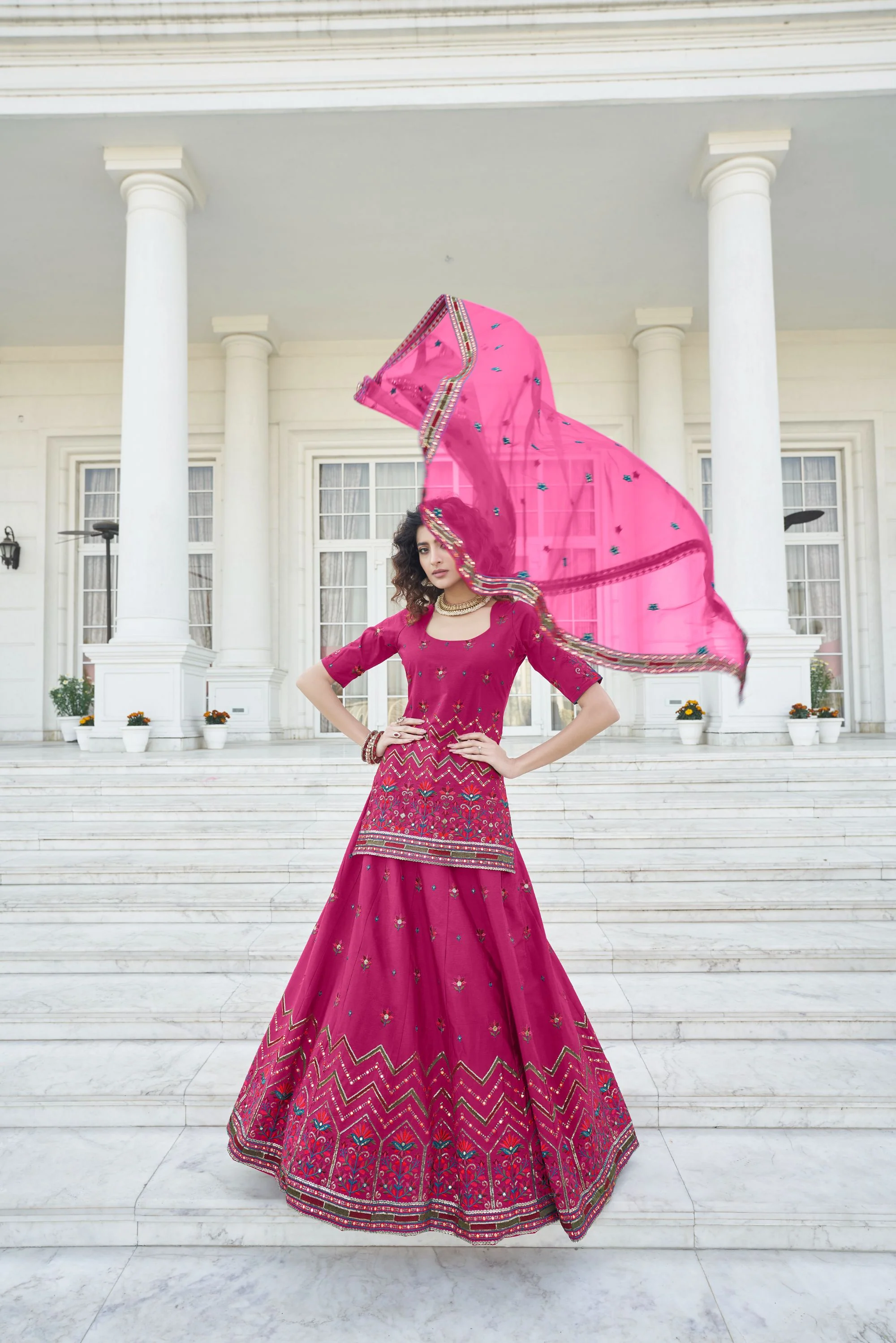 Dark Pink Color Faux Chiffon Gota Work Lehenga