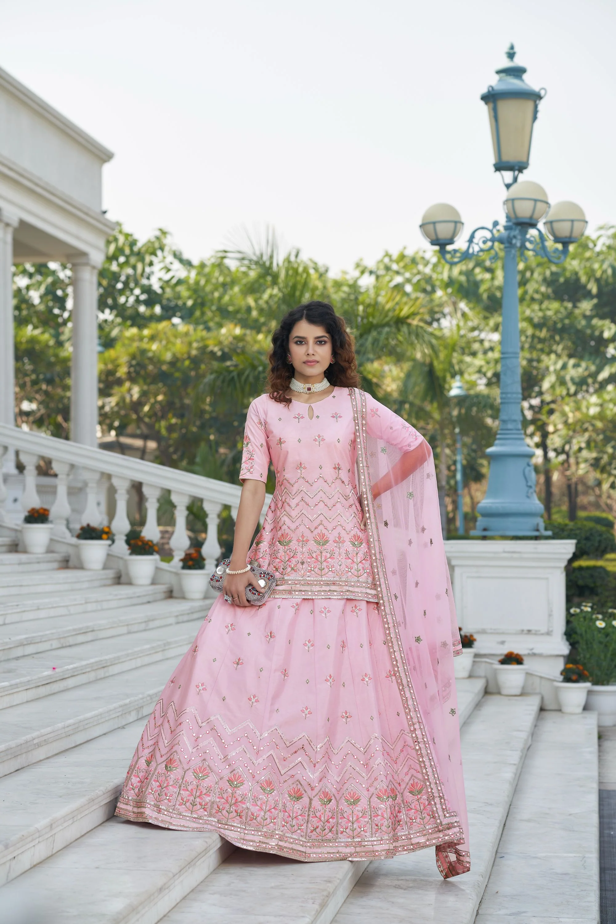 - Lehenga Choli Color: Pink