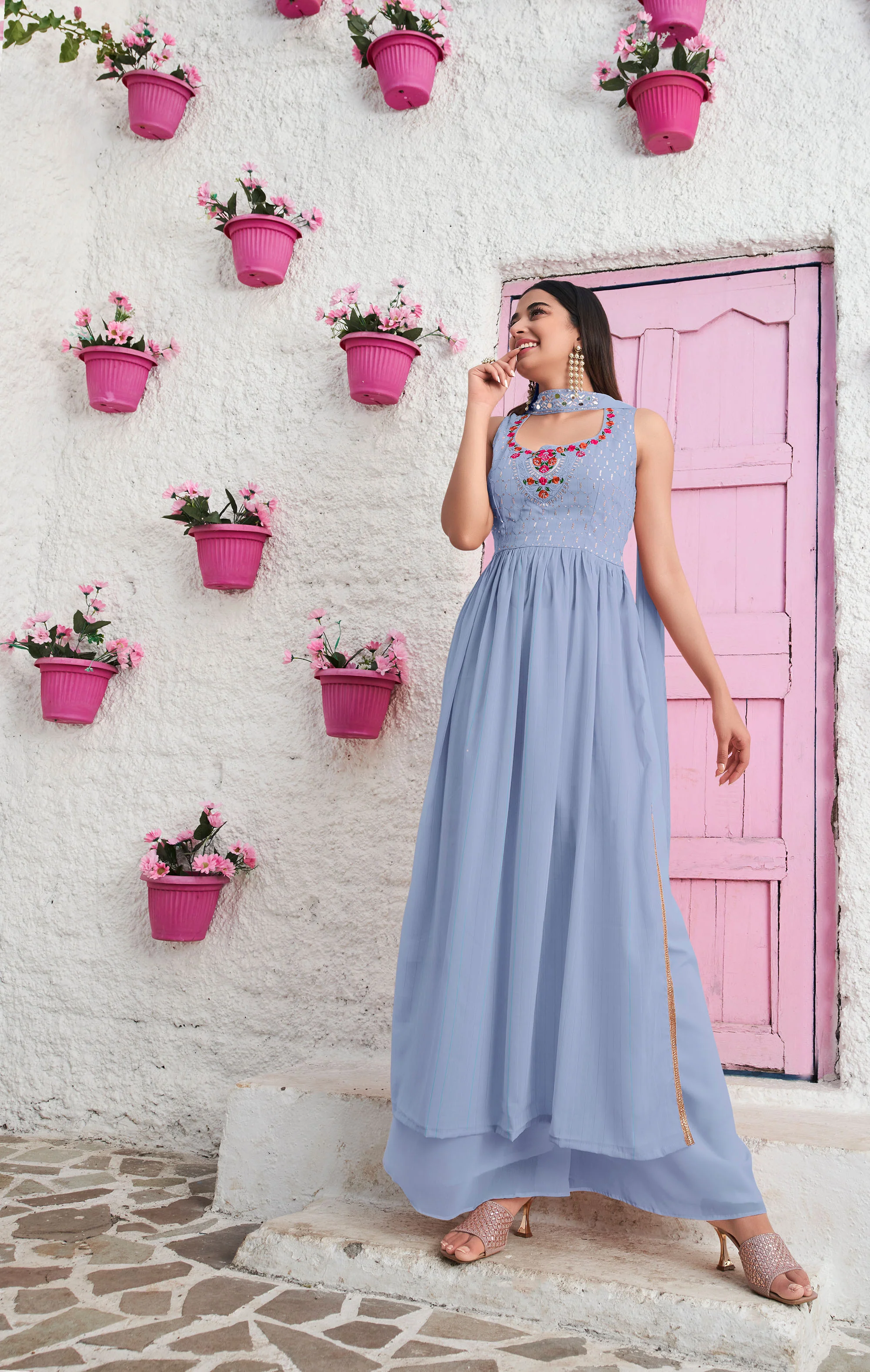 Sky Blue Sequins Embroidery Georgette Anarkali for Wedding guest