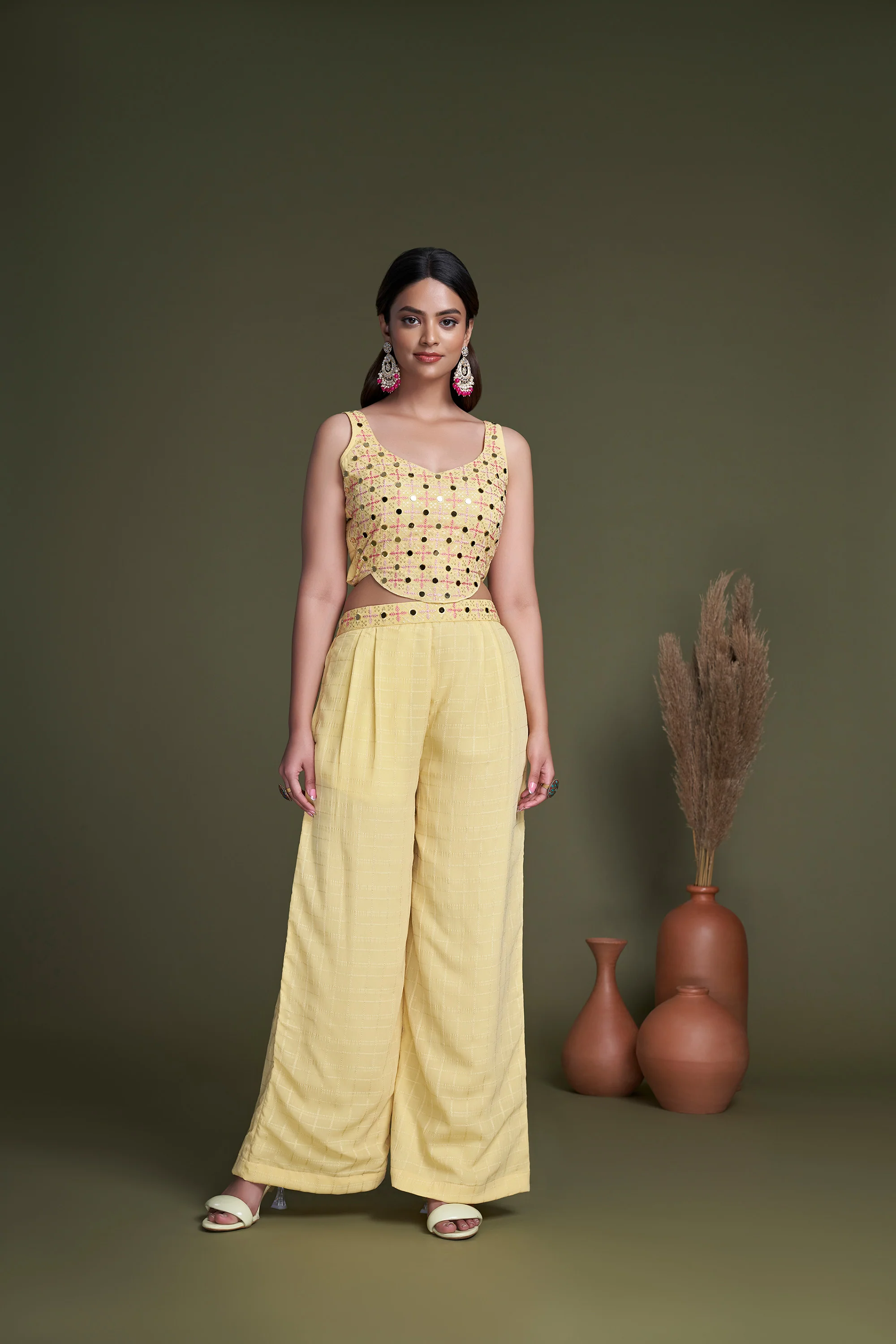 Yellow Mirror Embroidered Georgette Party Wear Palazzo